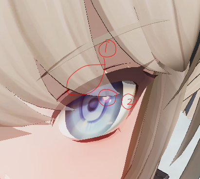 // Eye// Parallaxfloat3 viewDirOS = TransformWorldToObjectDir(viewDirWS);viewDirOS = normalize(viewDirOS);float2 parallaxOffset = viewDirOS.xy;parallaxOffset.y *= -1;float2 parallaxUV = i.uv + _ParallaxScale * parallaxOffset;// parallaxMaskfloat2 centerVec = i.uv - float2(0.5, 0.5);half centerDist = dot(centerVec, centerVec);half parallaxMask = smoothstep(_ParallaxMaskEdge, _ParallaxMaskEdge + _ParallaxMaskEdgeOffset, 1 - centerDist);// Tex Samplehalf4 mainTex = SAMPLE_TEXTURE2D(_BaseMap, sampler_BaseMap, lerp(UV, parallaxUV, parallaxMask));...// Eye spec addBlendOp [_BlendOp]// AddBlend [_BlendSrc] [_BlendDst]// SrcAlpha One// Eye shadow blendBlendOp [_BlendOp]// AddBlend [_BlendSrc] [_BlendDst]// SrcColor Zero